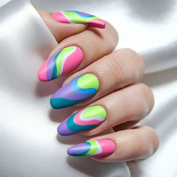 Swirly pastel rainbows or bold neon blends channel summer camp nostalgia. No two nails look exactly the same—just like real tie-dye.