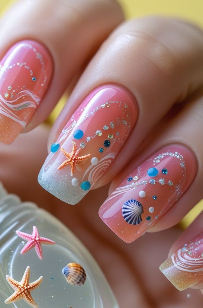 Tiny 3D starfish, shells, and pearls take your beach nail game up a notch. It’s like carrying a little bit of the ocean with you.