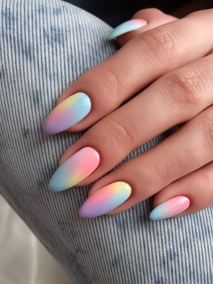 Soft gradients in lavender, pink, and baby blue create a dreamy sky-on-your-nails vibe. It will be perfect for sunny days and iced latte runs.