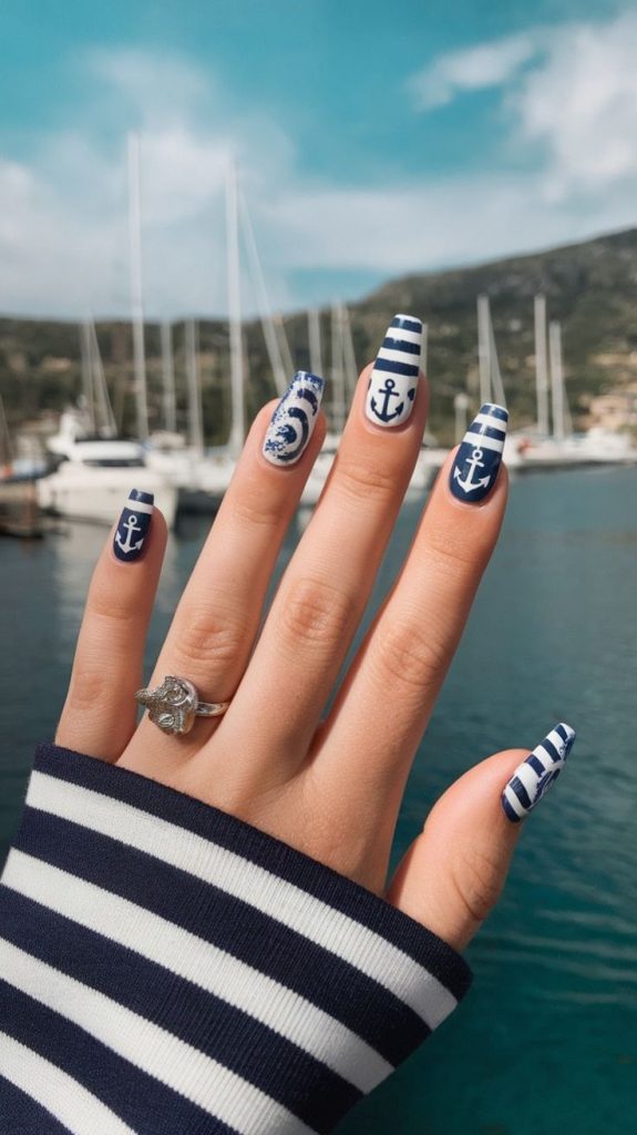 Damn the ideas of nails I can’t resist. Eager to try the nautical stripes 💅