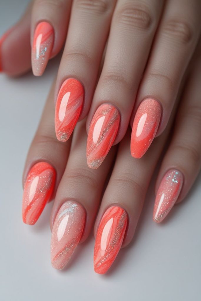 Melt peach, coral, and plum into each other like a hot summer sky. Every time you glance at your hands, it feels like a golden hour.